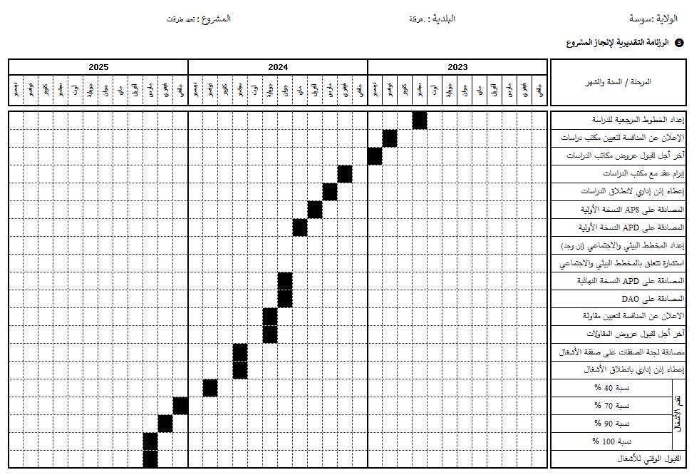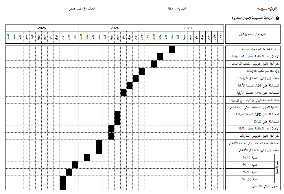 الرزنامة التقديرية لإنجاز مشروع تعبيد الطرقات